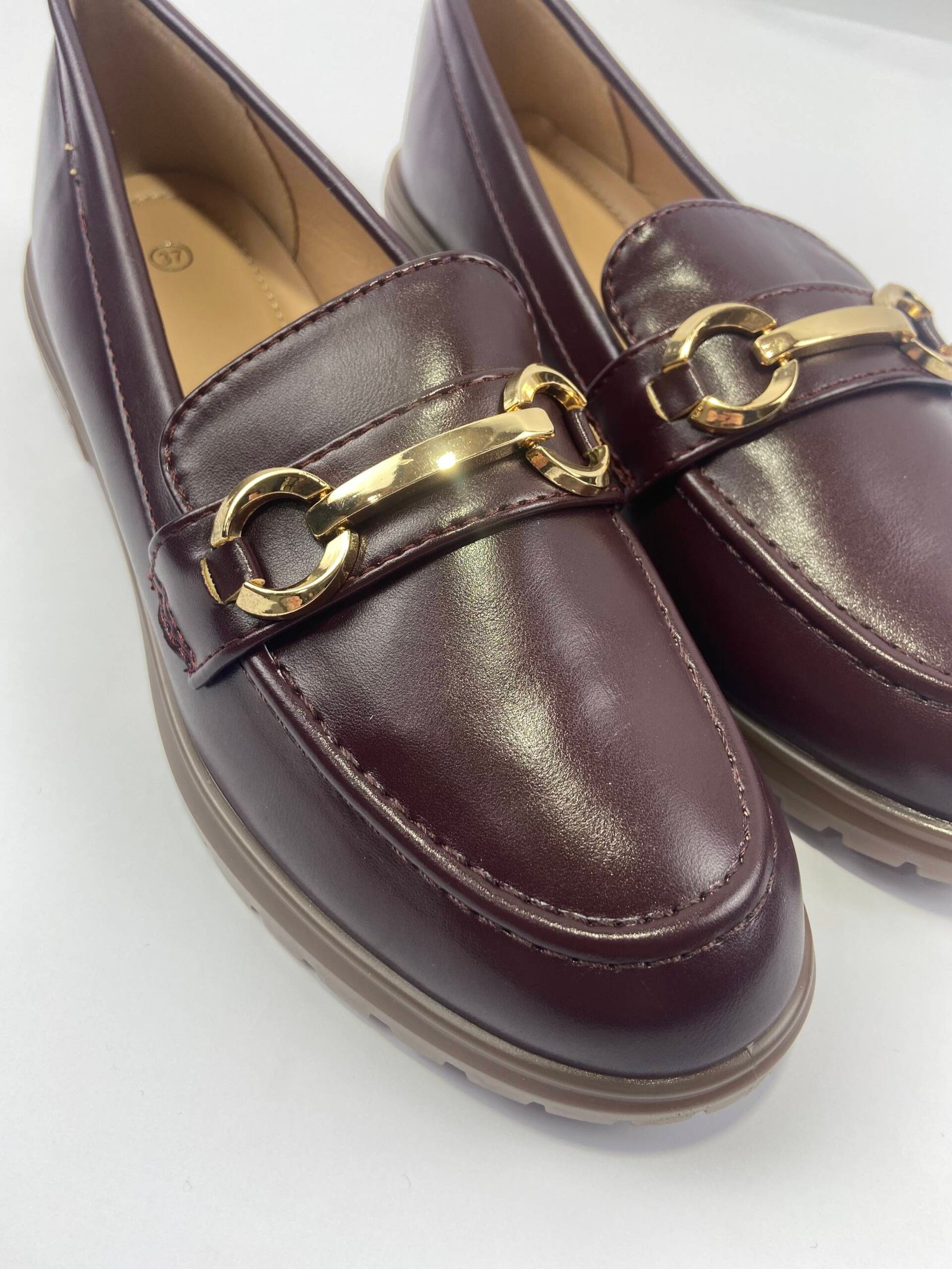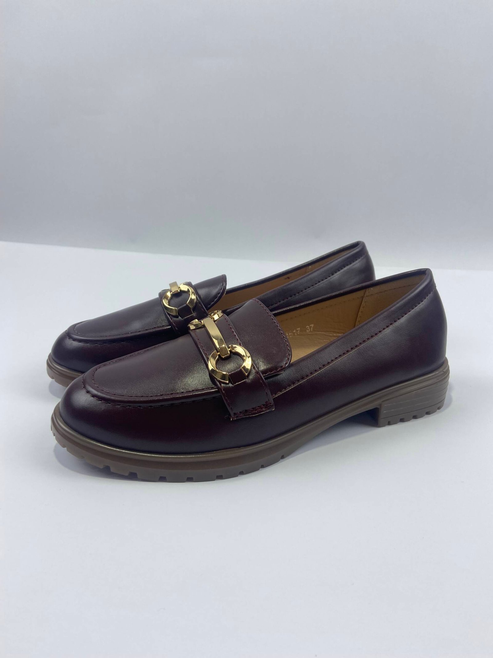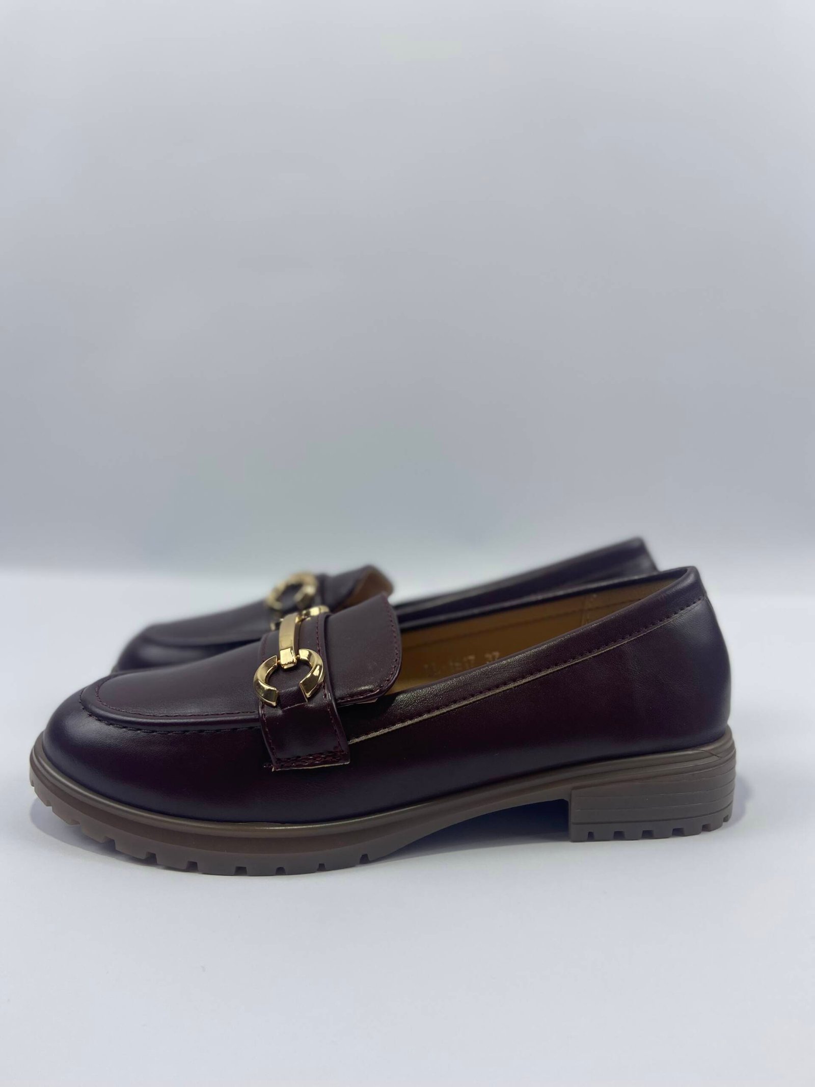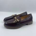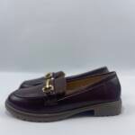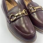 Μοκασίνι δερμάτινη wine με χρυσά αγκράφα