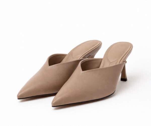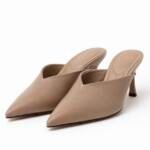 Mules με Μυτερή Μύτη και Χαμηλό Τακούνι σε Taupe Απόχρωση